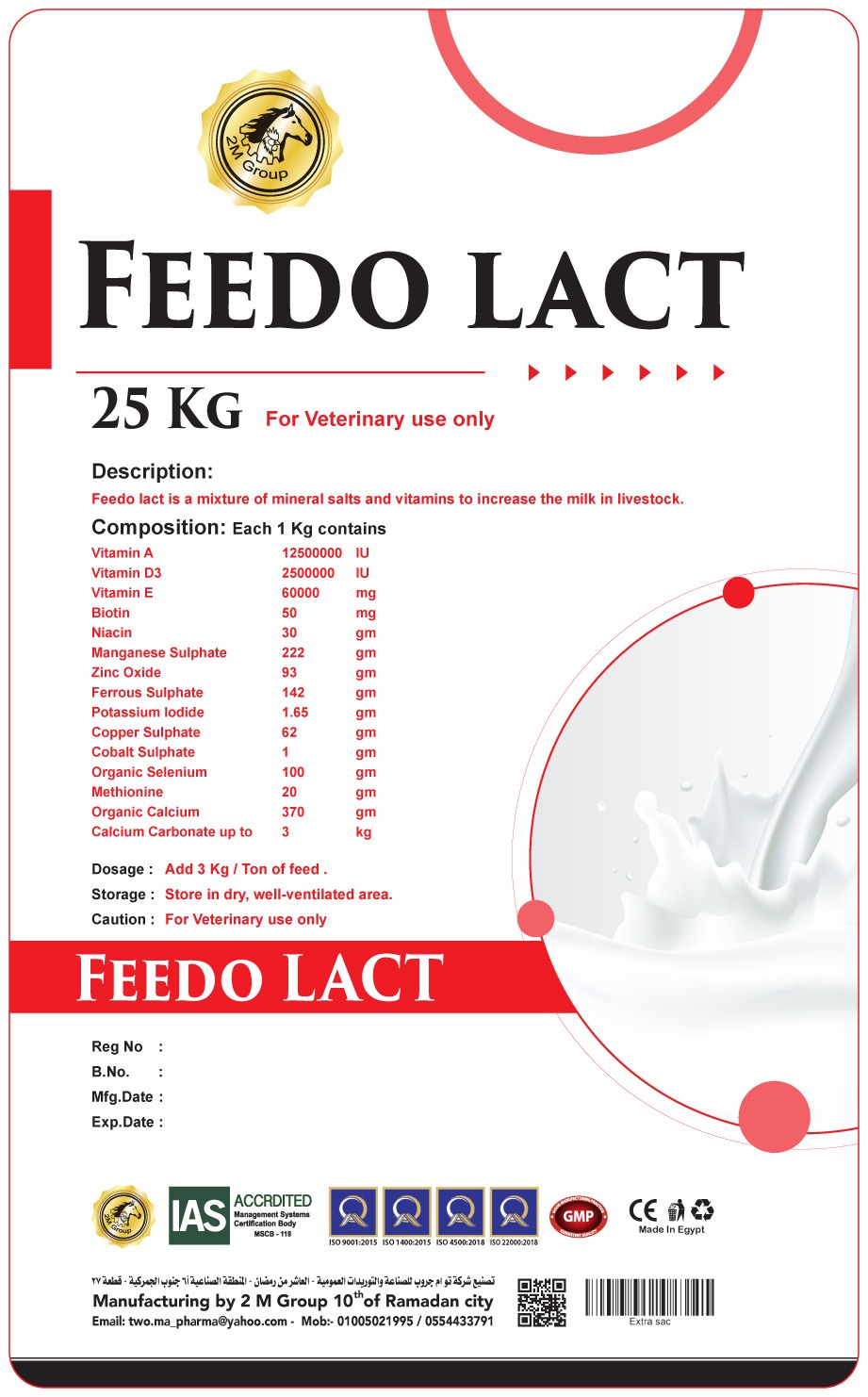 Feedo lact is a mixture of mineral salts and vitamins to increase the milk in livestock